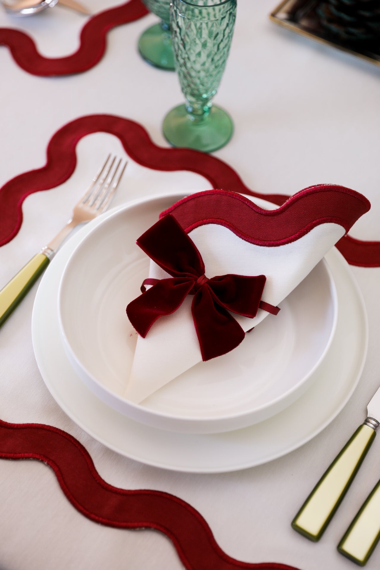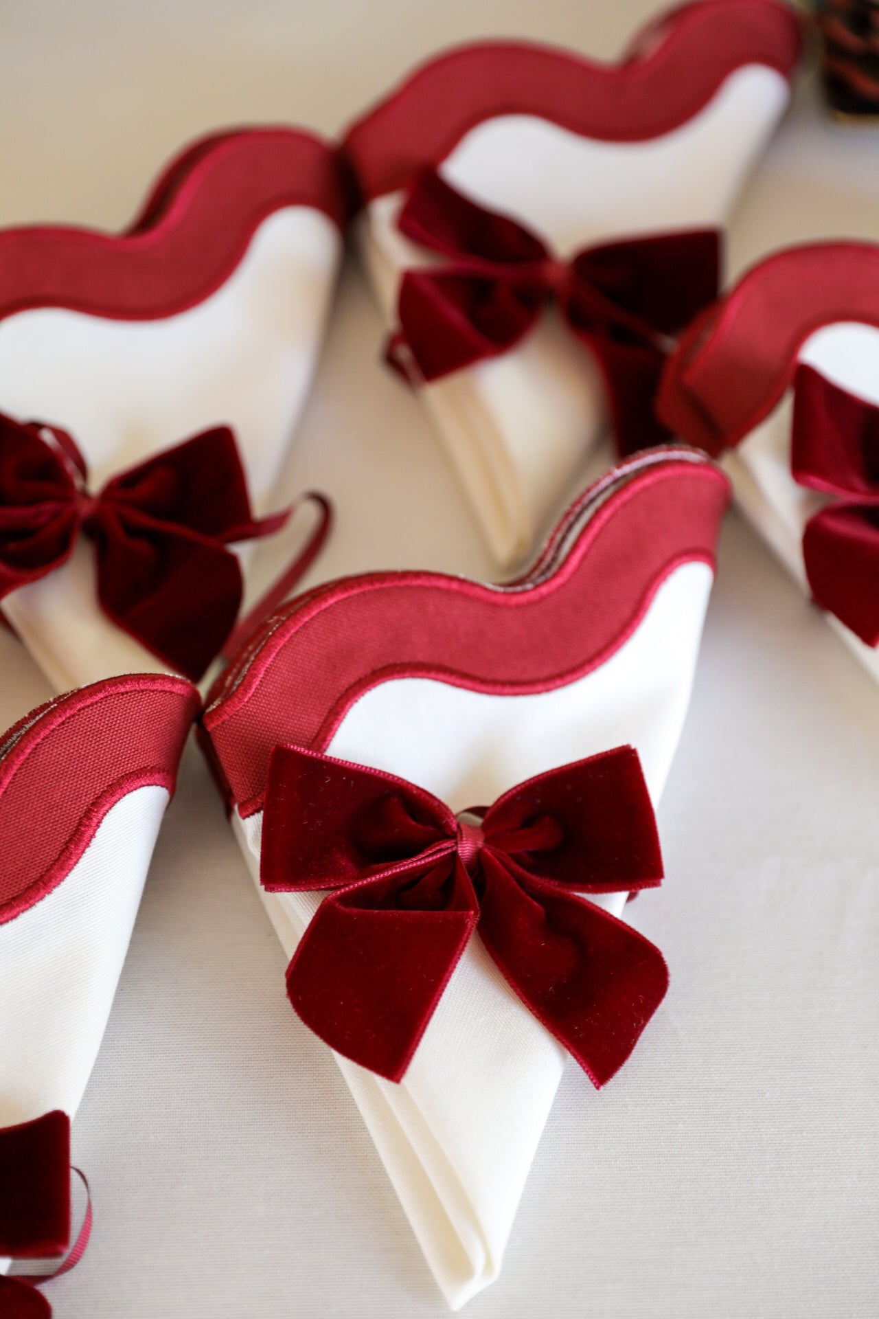 Özel olarak elde tasarlanan kadife kurdeleleri peçete halkası olarak kullanarak yılbaşı sofralarınıza renkli ve farklı bir dokunuş katabilirsiniz.