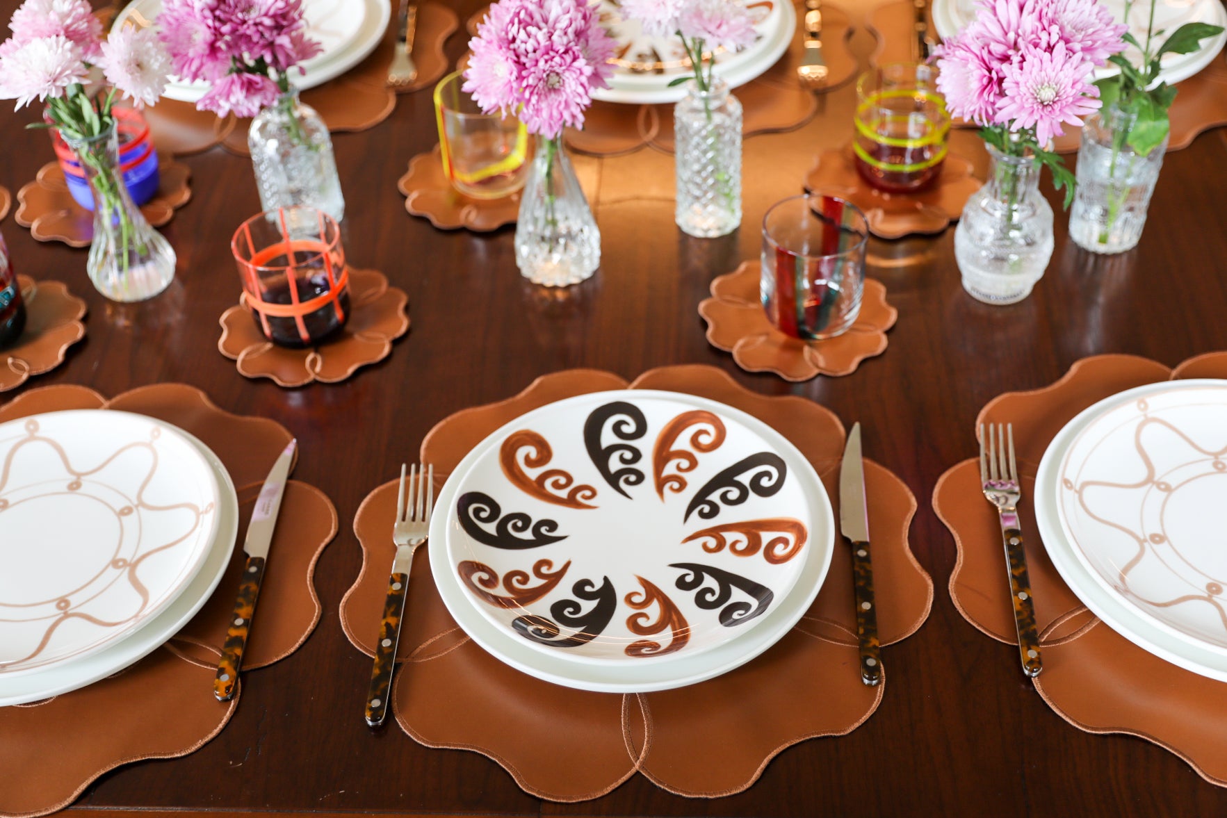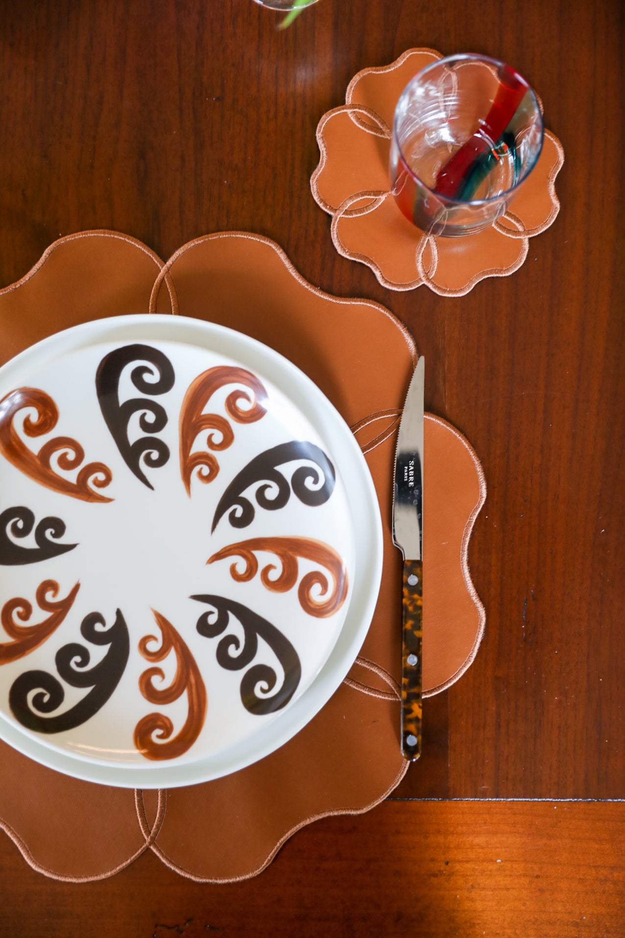 İçerik: Dört adet taba rengi deri Camellia amerikan servisi ve dört adet Camellia bardak altlığı