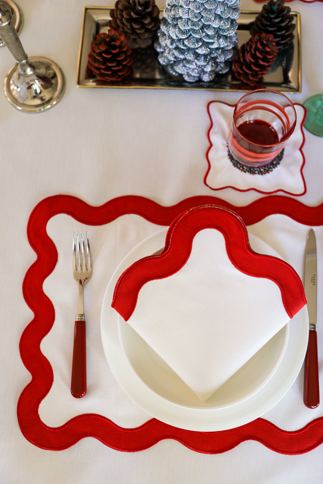 Renk: Kırmızı kumaş çerçeveli ekru peçete