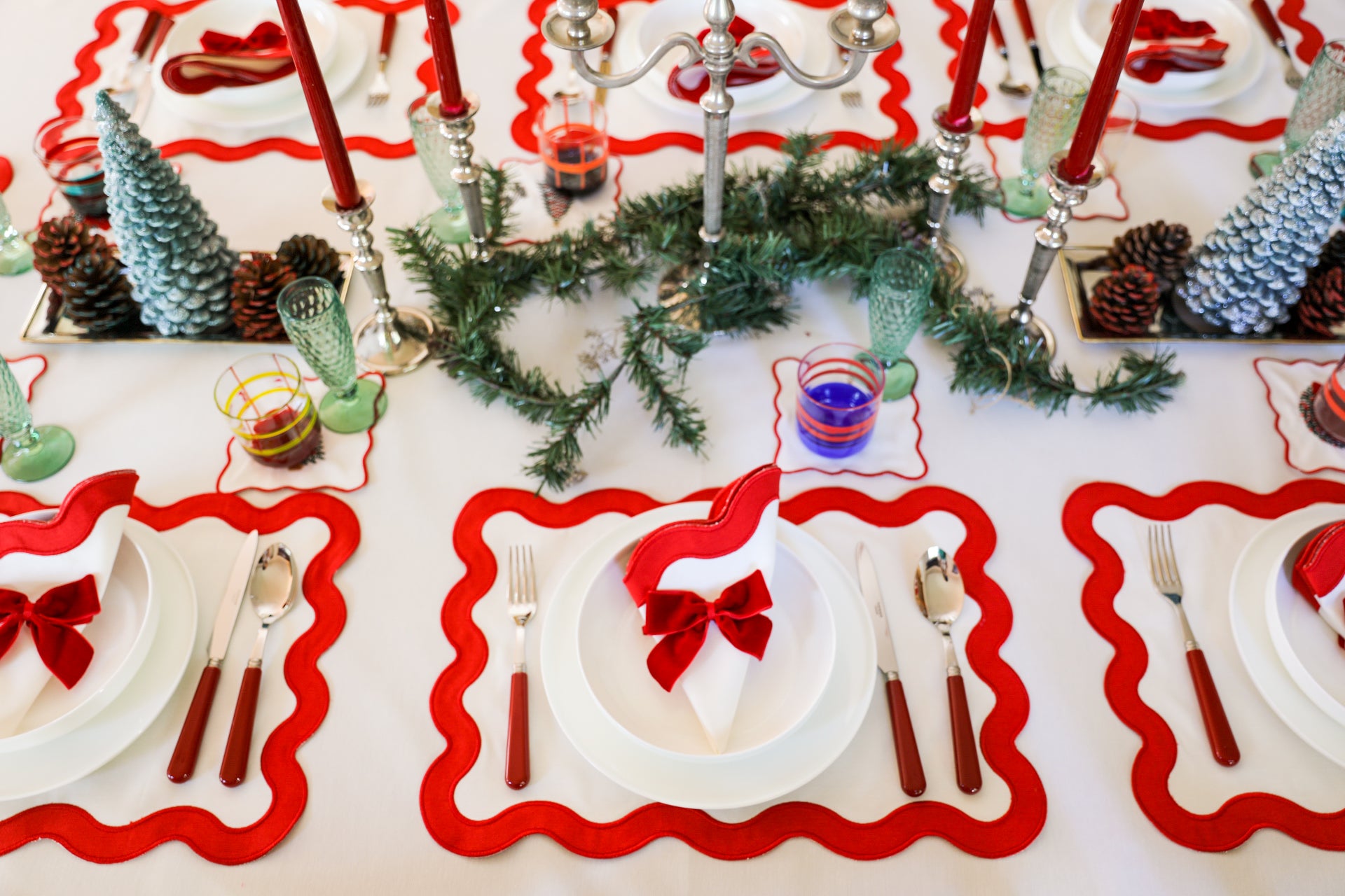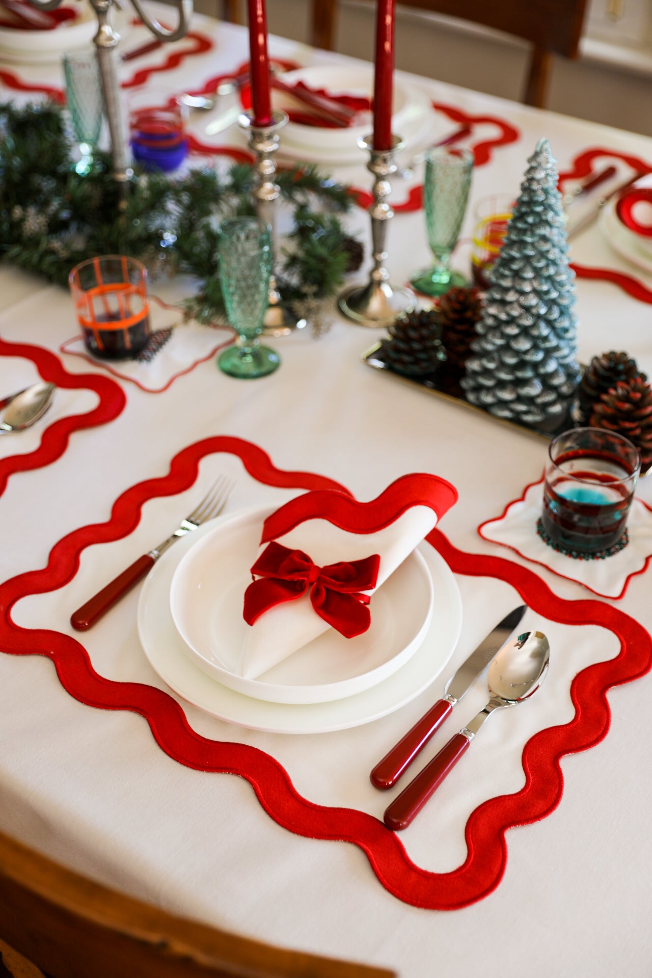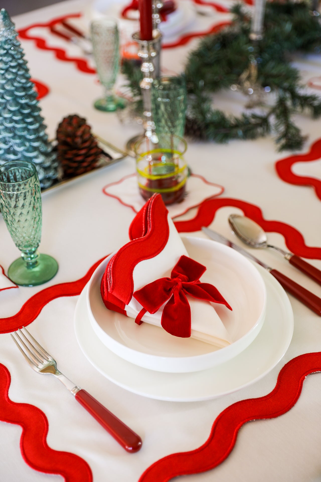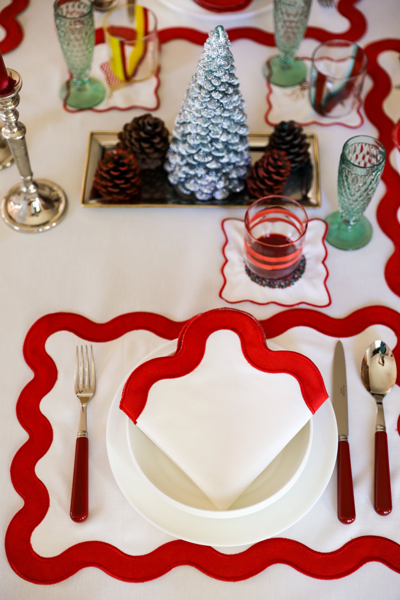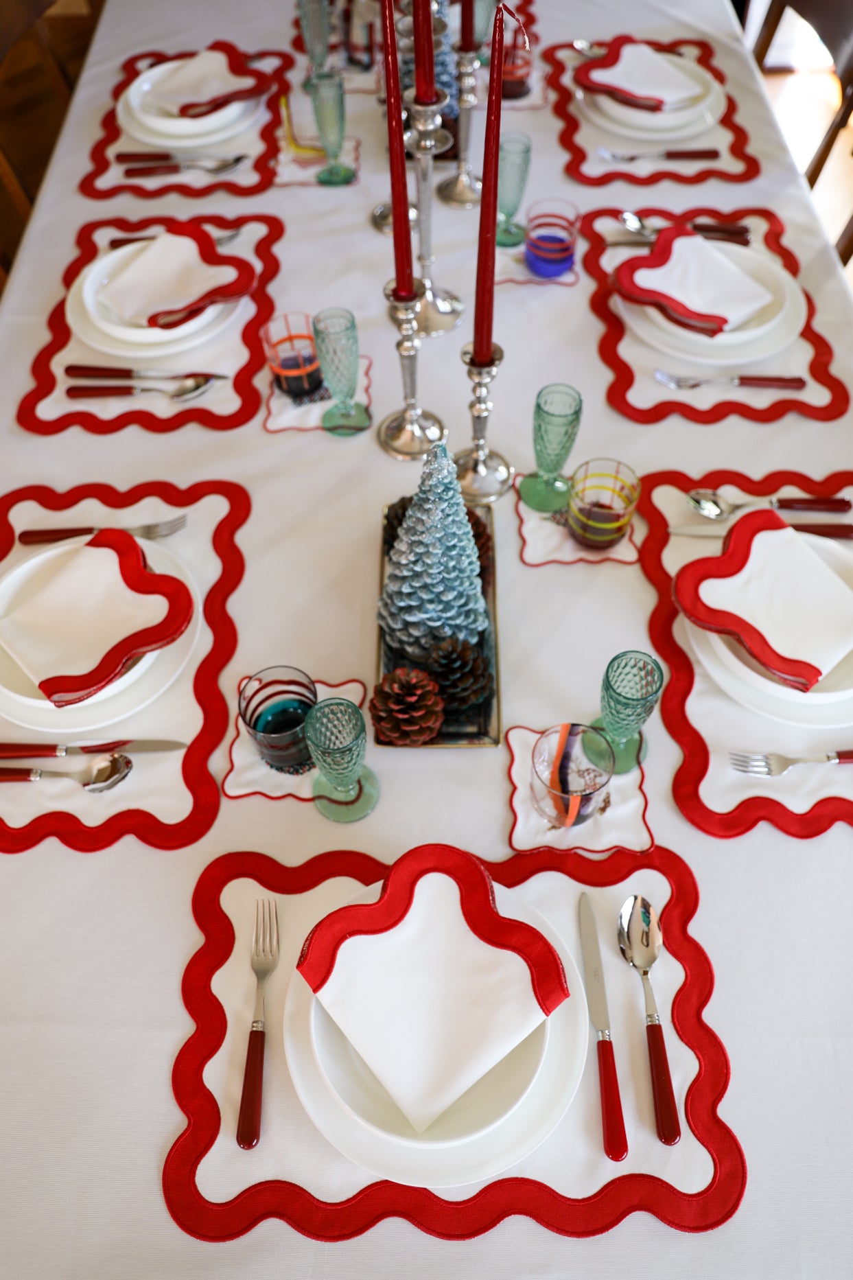 Renk: Kırmızı kumaş çerçeveli ekru amerikan servisi