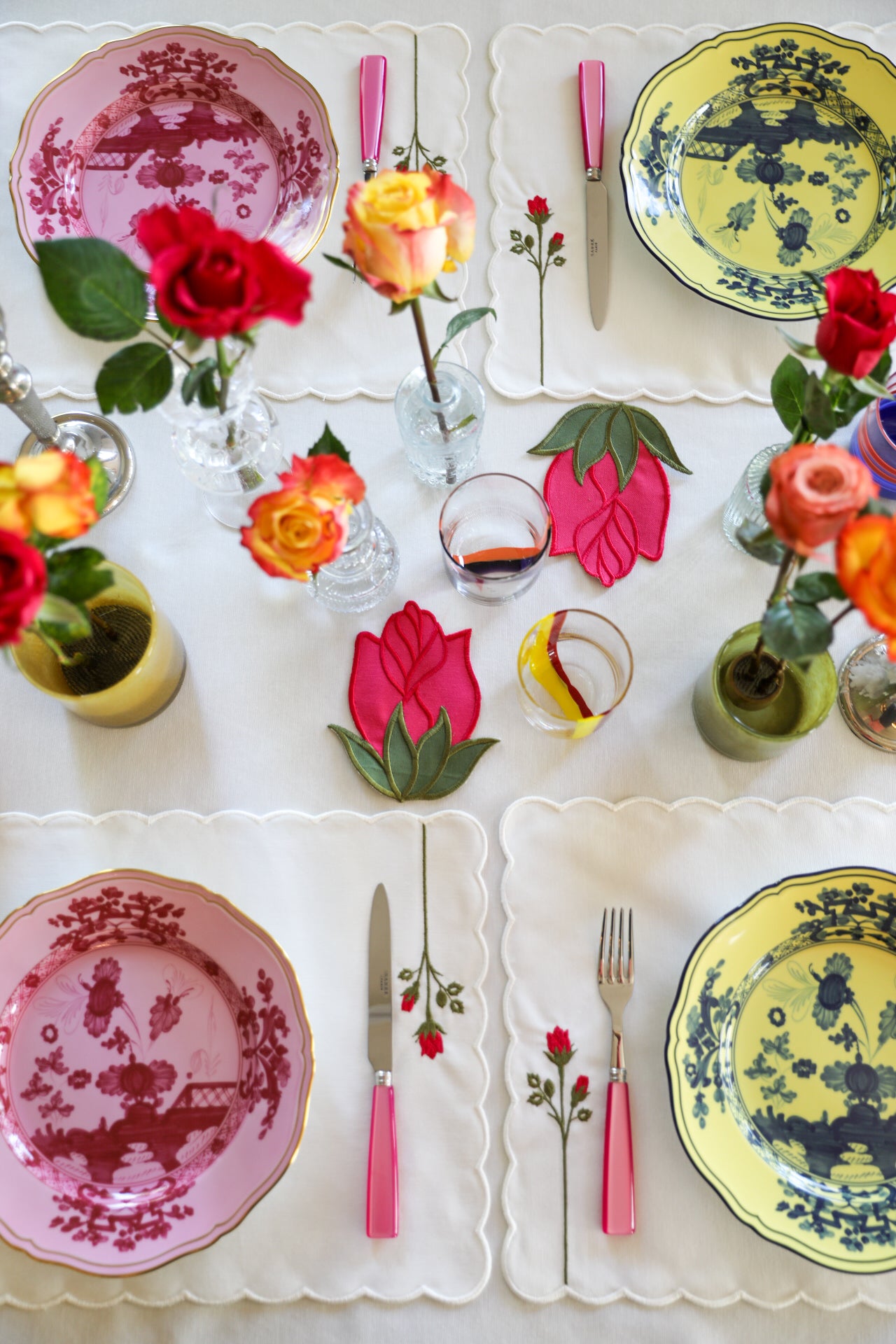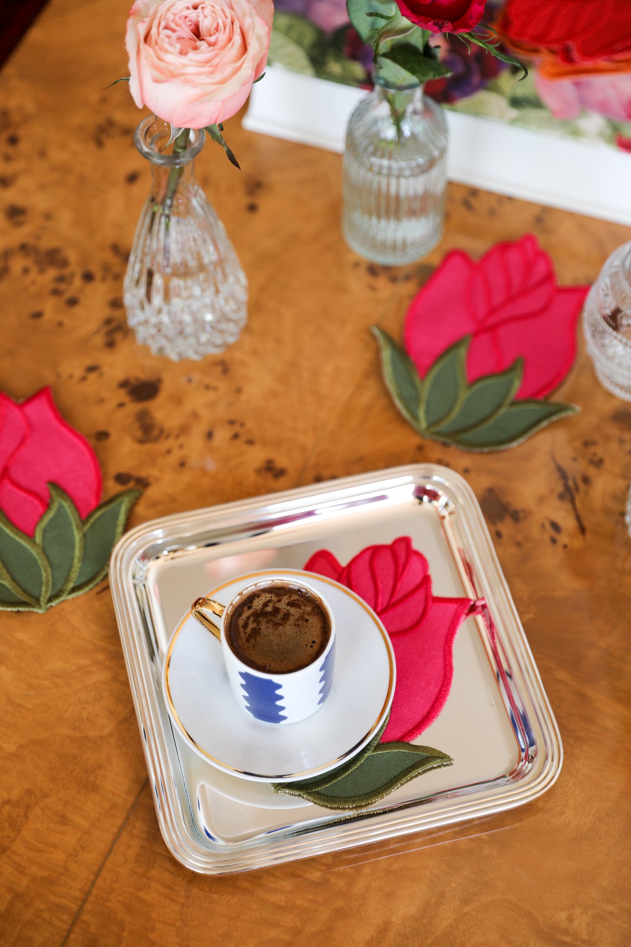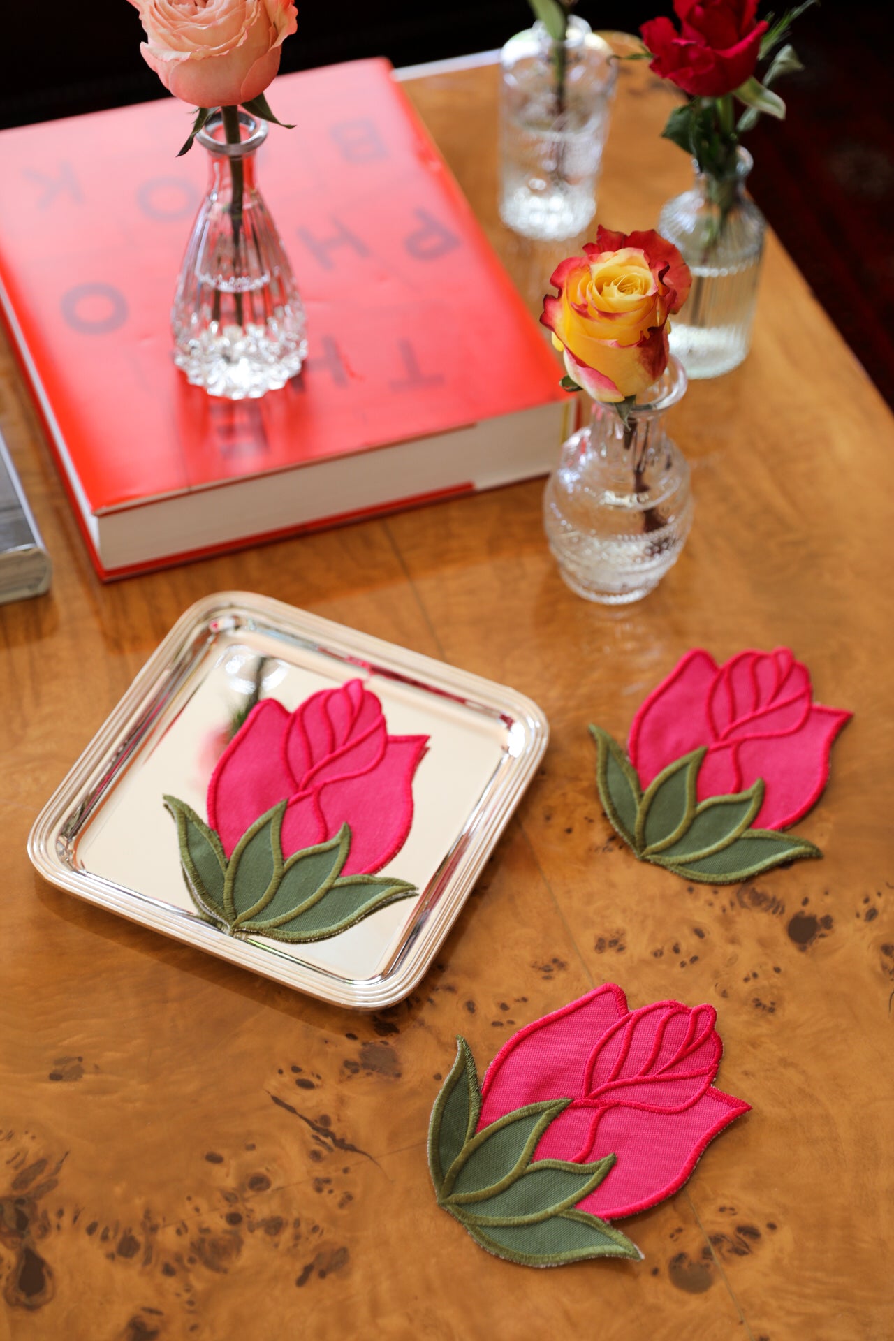 Renk: Pembe gül çiçeği desenli kokteyl peçeteleri
